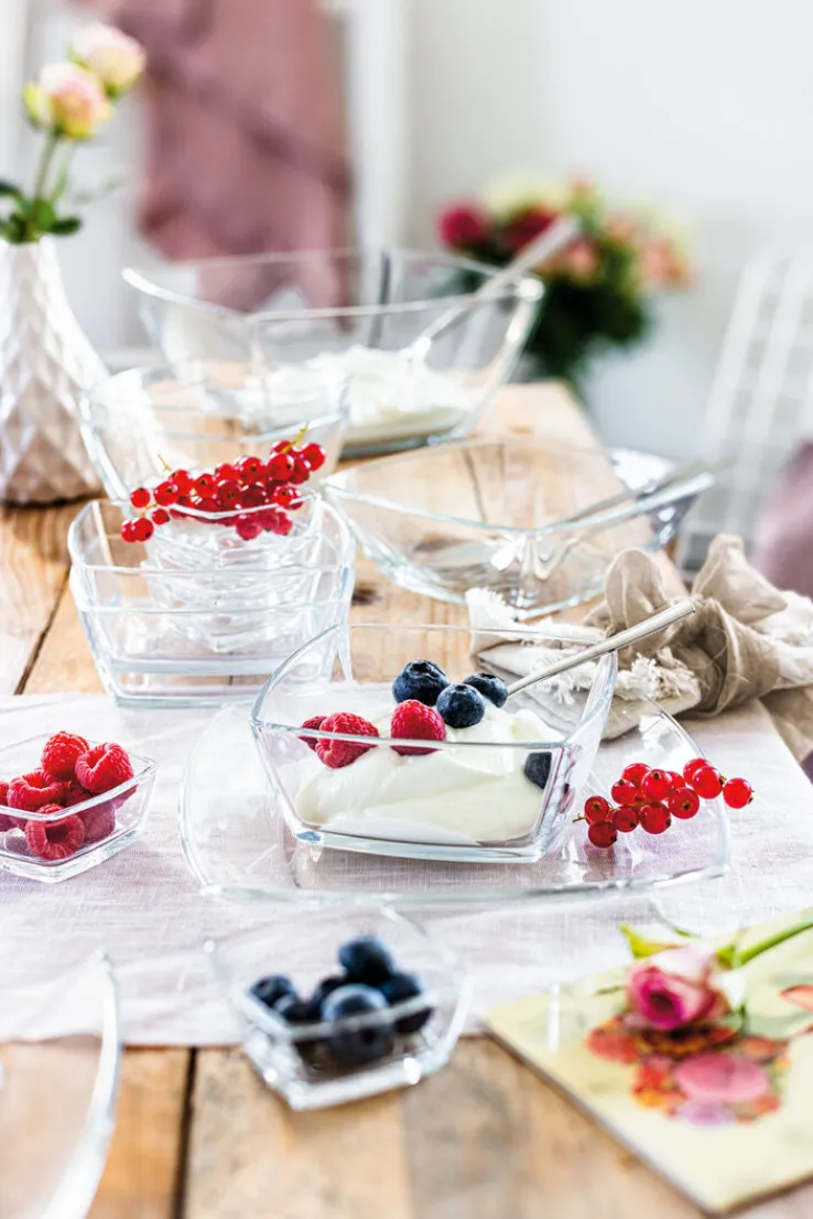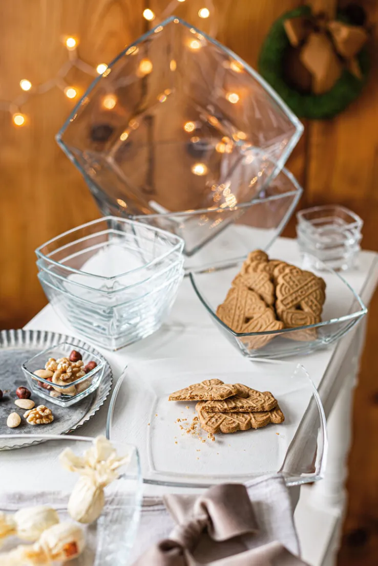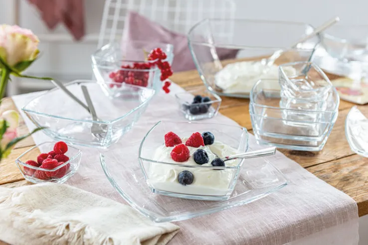 Dieser schöne Glasteller CARRE zeichnet sich durch die quadratische Größe von circa neunzehn Zentimetern und einer zeitlosen Schönheit aus.