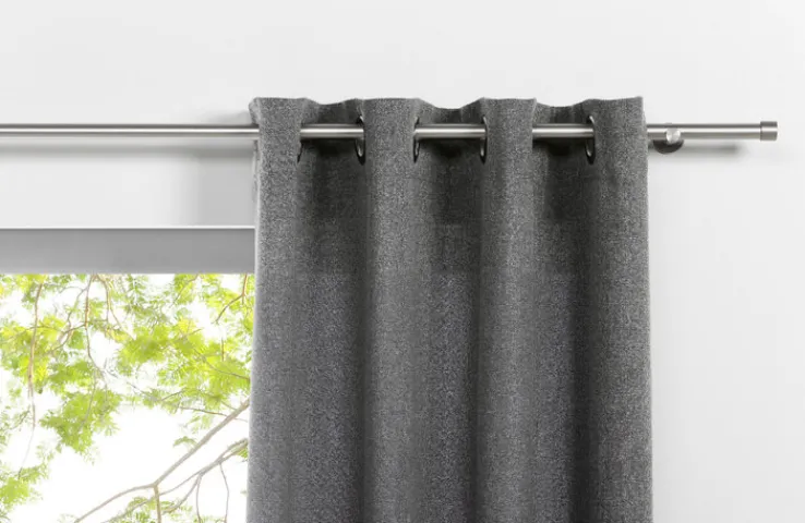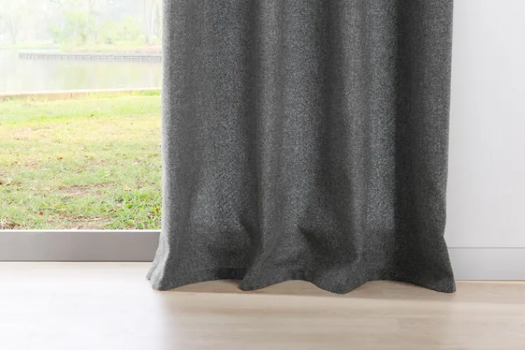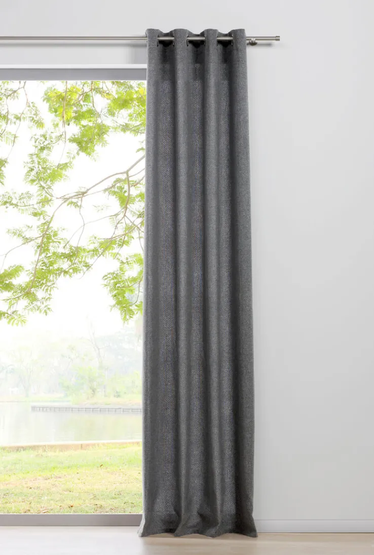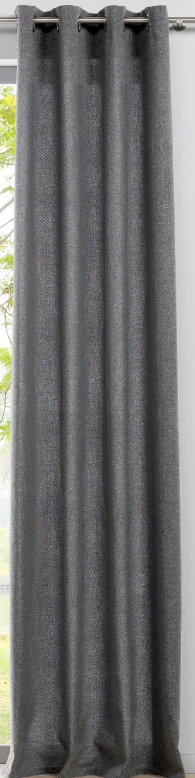 Einfach aufhängen, fertig: Der my deco Ösenvorhang CHALET in Grau misst 135 x 300 cm. Er ist aus pflegeleichten Synthetikfasern, die den perfekten Sichtschutz bieten und den Raum leicht abdunkeln.
