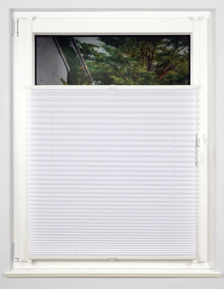 Das weiße, 90 x 130 cm große Plissee kann ohne Bohren montiert werden und bringt das erforderliche Befestigungsmaterial gleich mit. Es lässt sich auf beiden Seiten individuell verstellen und überzeugt mit einer sehr schönen und leichten Optik.