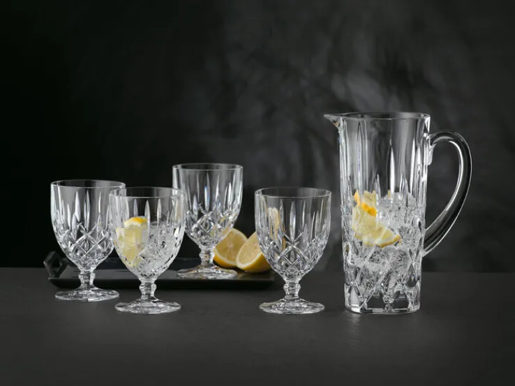 Der ansprechende Nachtmann Krug NOBLESSE serviert formvollendet Getränke wie Säfte, Mineralwasser, Sangria oder Eistee. Transparent und mit einem exquisiten Schliff versehen, lässt der Krug den Blick auf seinen Inhalt zu, so dass man immer über den Füllungszustand informiert ist. Der edle Krug ist die ideale Ergänzung zu Gläsern aus der gleichnamigen Serie. Dank des ergonomischen Griffs liegt das Gefäß perfekt in der Hand. Die Tülle erleichtert das Ausgießen. Zum Säubern kann der Krug einfach in der Spülmaschine gereinigt werden.