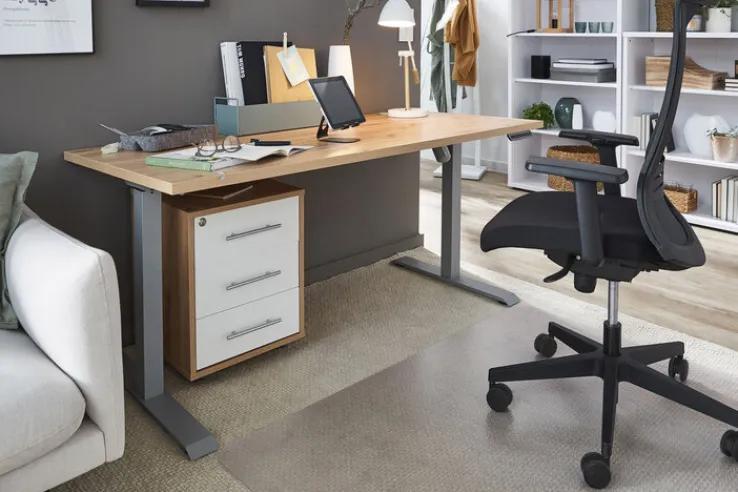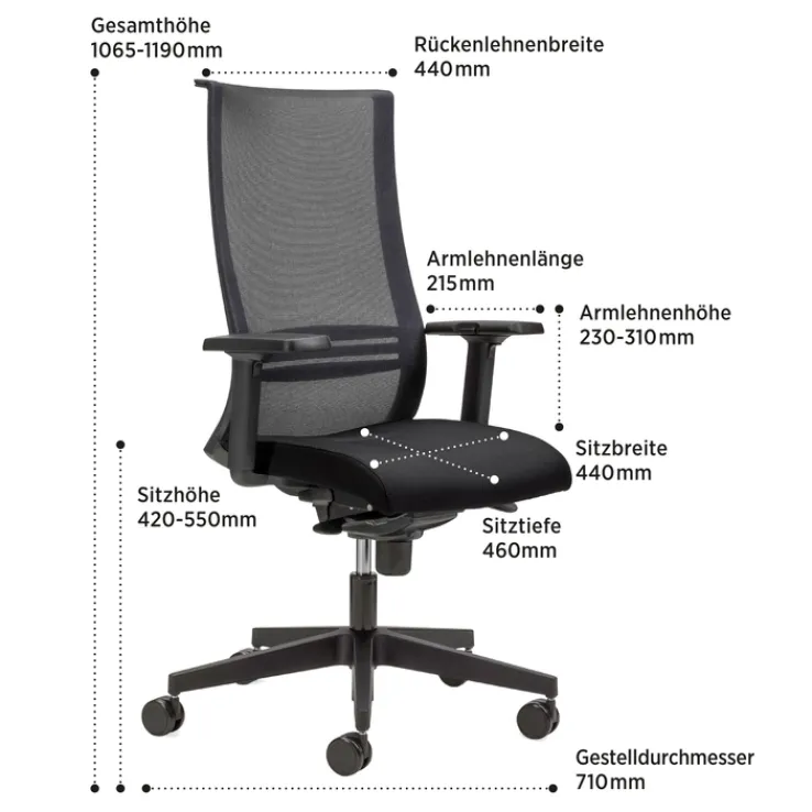 Dieser moderne Drehstuhl besteht aus einem Fußkreuz auf dem Sie mühelos durch den Raum gleiten lassen. Dank eines Gasliftes ist der Drehstuhl höhenverstellbar, damit ist er einfach an jede Person und jeden Schreibtisch anzupassen. Für noch mehr Komfort sorgen die Armlehnen, die mit weichen Armpadauflagen in schwarz besonders bequem sind. Zur Unterstützung des Rückens verfügt der Drehstuhl noch über eine Lumbalstütze, diese lässt sich in der Höhe verstellen und somit jedem Rücken individuell anpassen.