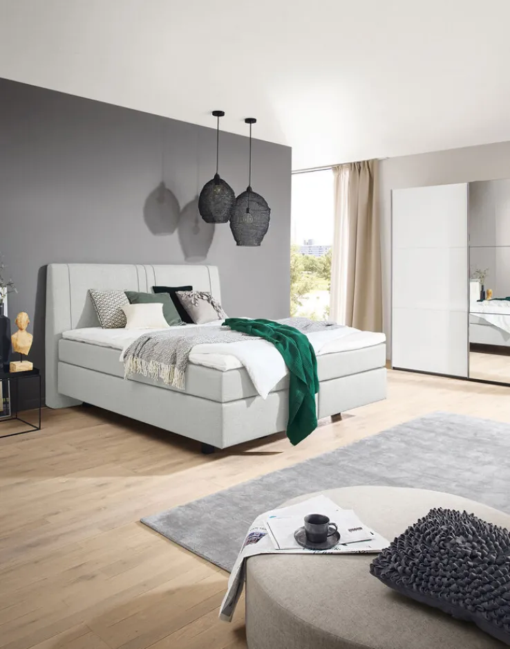 Im eleganten Hellgrau präsentiert sich das Boxspringbett FENSON KOPENHAGEN aus dem Hause Ole Gunderson und bietet mit einer Liegefläche von 180 x 200 cm hohen Schlafkomfort für zwei Personen.
