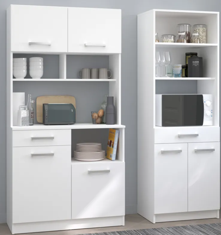 Dank der großzügigen Stauraummöglichkeiten bleibt alles ordentlich verstaut und leicht zugänglich. Ob Geschirr, Tischdecken oder andere Essensutensilien – das Buffet-Set bietet reichlich Platz und sorgt für Ordnung. Seine vielseitige Nutzung macht es zu einem unverzichtbaren Möbelstück für jede Situation, sei es beim täglichen Familienessen oder bei besonderen Anlässen.