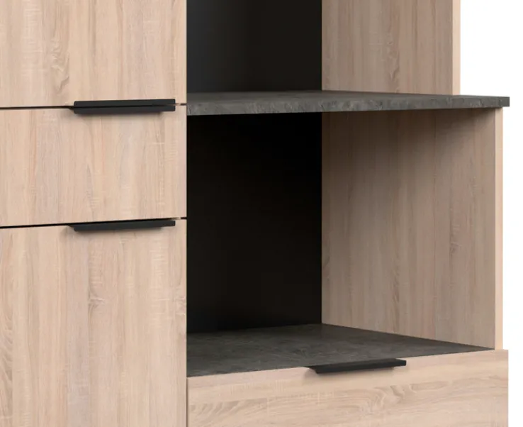 Mit dem 3-teiligen Parisot Küchenbuffet Fumay3 in Eiche Dekor/ Beton Optik lassen sich Abstellflächen und Stauraum in der Küche erweitern. Punkten kann das Set zudem mit einem modernen Look, der Natürlichkeit ausstrahlt und für ein freundliches Ambiente sorgt.
