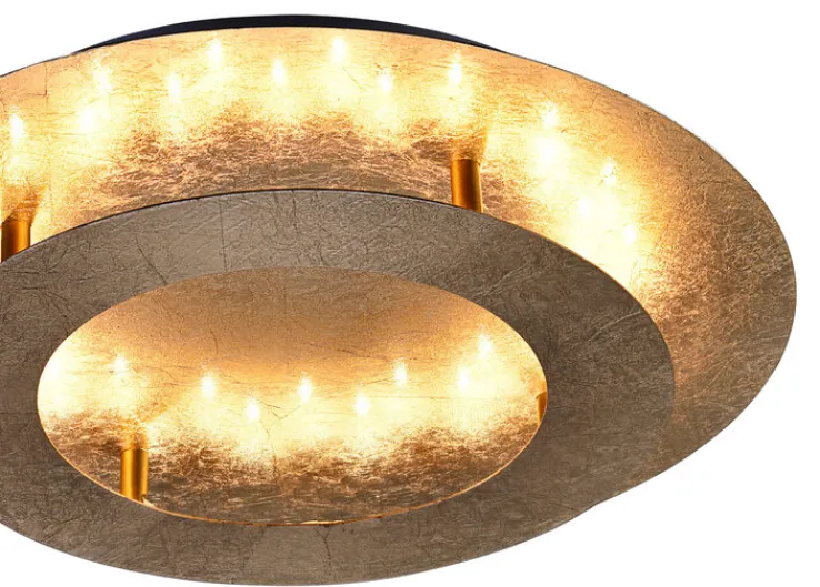 Wenn Sie nach Lösungen für eine einladende Innenbeleuchtung in Ihrem Zuhause suchen, sollten Sie auf jeden Fall einen Blick auf die Paul Neuhaus LED Deckenlampe NEVIS werfen. Die runde Lampe hat einen Durchmesser von rund 40 cm und überzeugt durch ihr gelungenes Zusammenspiel der beiden runden Elemente. Was darüber hinaus ins Auge fällt, ist die rustikale, goldfarbige Metall-Optik, die perfekt zu dem schnörkellos funktionalen Design passt. Betrieben wird die Lichtquelle mit einer energiesparenden, eingebauten LED.