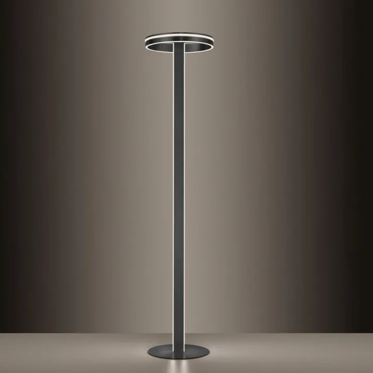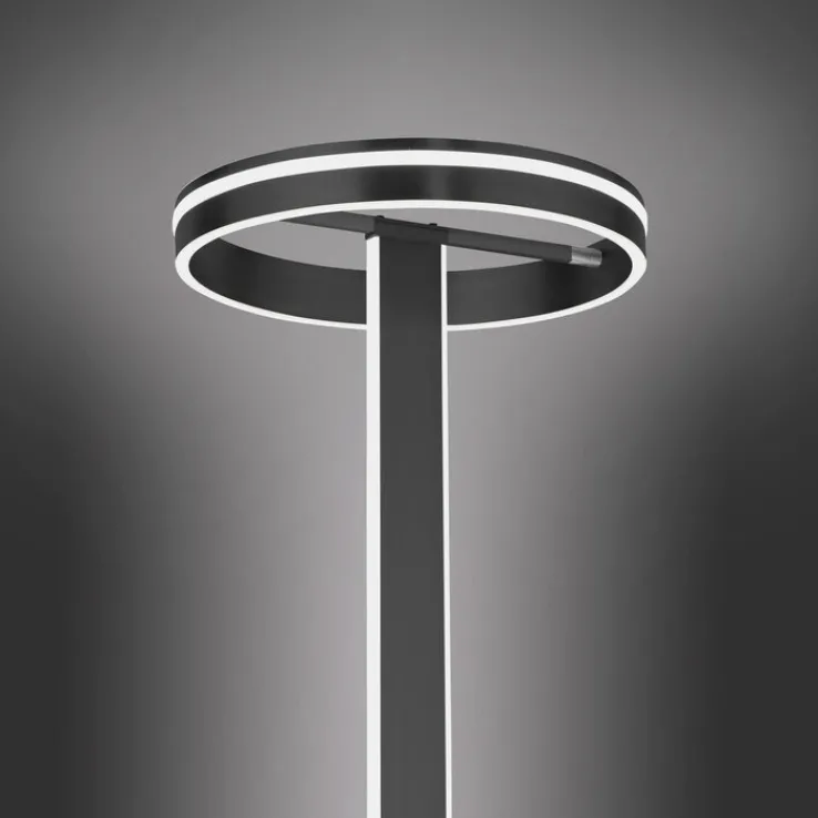 Ob im Wohn- oder Schlafzimmer: Besonders in moderne Räume fügt sich die in Anthrazit gehaltene Stehlampe von Paul Neuhaus mit Leichtigkeit ein. Der Schirm der 3-flammigen Lampe lässt sich verstellen, um ideale Lichtverhältnisse entstehen zu lassen. Doch auch das Licht selbst kann mithilfe der Fernbedienung reguliert werden. Sowohl die Lichtfarbe als auch die Lichthelligkeit sind anpassbar. Die für die Beleuchtung erforderlichen LEDs sind bereits fest verbaut und helfen, möglichst wenig Strom zu verbrauchen.