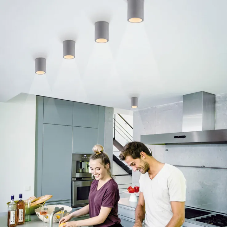 Die stilvoll gestaltete Retrofit Deckenlampe ETON von Paul Neuhaus hat einen Durchmesser von etwa 11 cm. Sie hat ein zeitloses Design und passt in den modern eingerichteten Wohnbereich. Durch die elegante Beton-Optik und die zylindrische Form ist die 1-flammige Lampe vielseitig kombinierbar. Sie passt in geschmackvoll eingerichtete Wohnzimmer und ist auch zur Beleuchtung des Eingangsbereichs ideal. Die Deckenlampe sorgt für ein helles Licht, das nicht blendet.