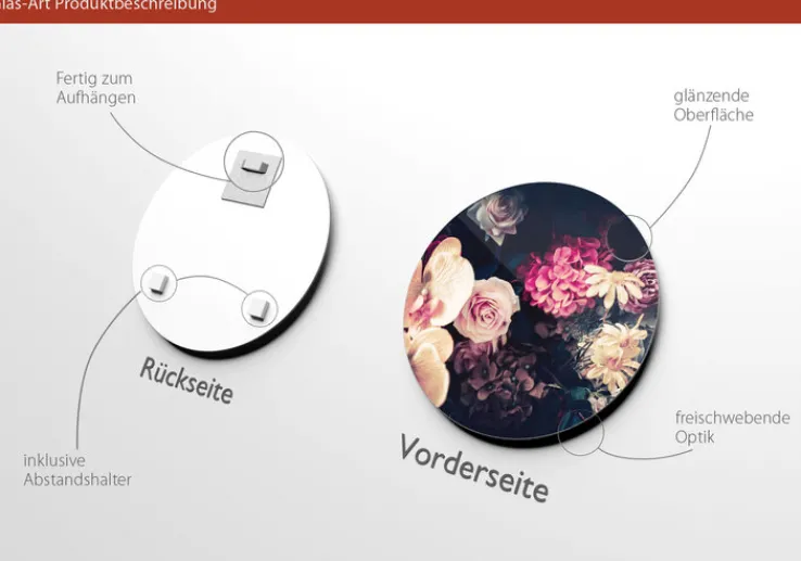 Das Glas Wandbild „BAROQUE FLOWERS“ aus der Serie Pro-Art Bilderpalette ist ein beeindruckendes Dekorationsstück für Ihr Zuhause. Mit einem Durchmesser von 20 cm und einem Gewicht von 0,34 kg ist es leicht und einfach zu montieren. Das runde Design aus hochwertigem Glas zeigt ein lebendiges, mehrfarbiges Blumenmotiv, das jedem Raum eine elegante und künstlerische Note verleiht.