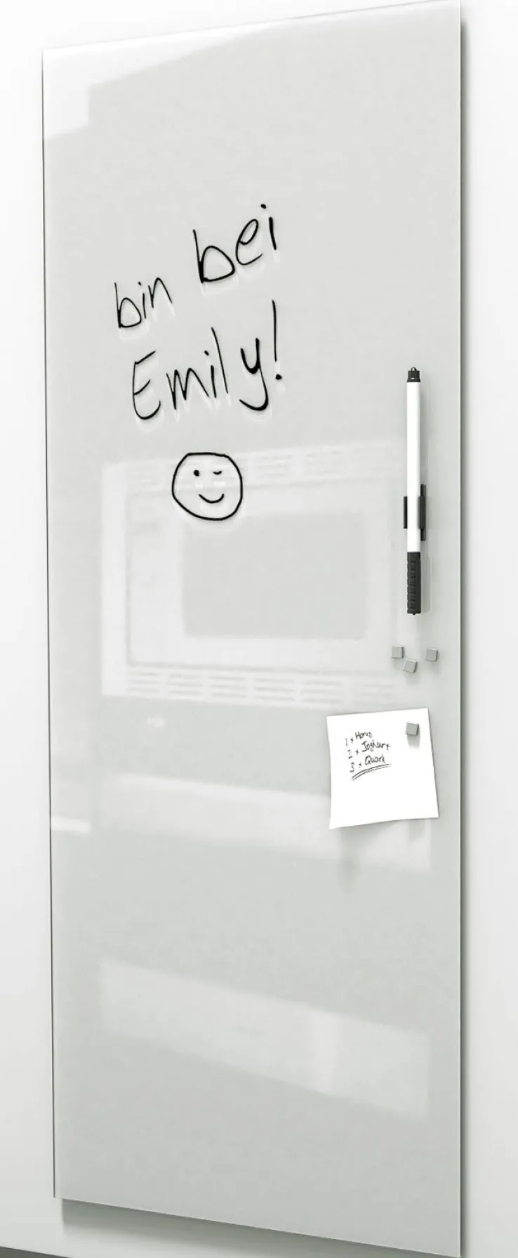 Das rechteckige Board wird hochkant aufgehängt. Es ist viel Platz, um Nachrichten für die übrigen Familienmitglieder zu hinterlassen: Ein spontaner Besuch bei der Nachbarin, eine ungeplante Verabredung am Nachmittag oder eine wichtige Mitteilung in Bezug auf den Haushalt – jeden Tag gibt es neue Gründe, den schwarzen Stift zu benutzen. Über ein Smiley freuen sich alle. Mit den Magneten hängen Sie wichtige Zettel und Papiere auf, vielleicht auch Telefonnummern. Daher könnte der beste Platz für das Board die Wand neben dem Telefon sein.