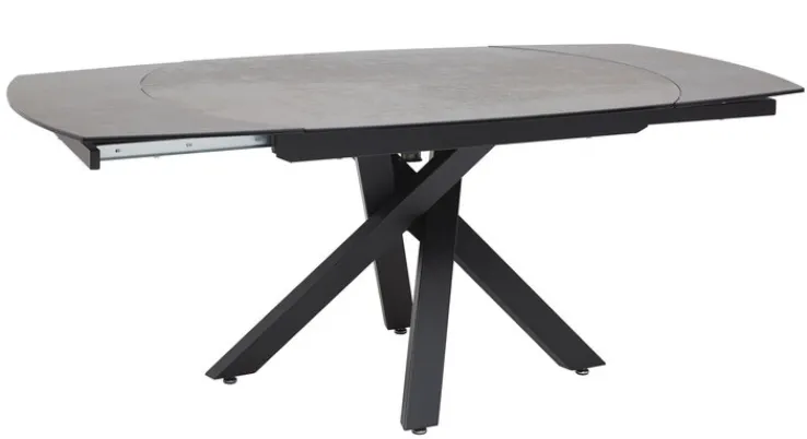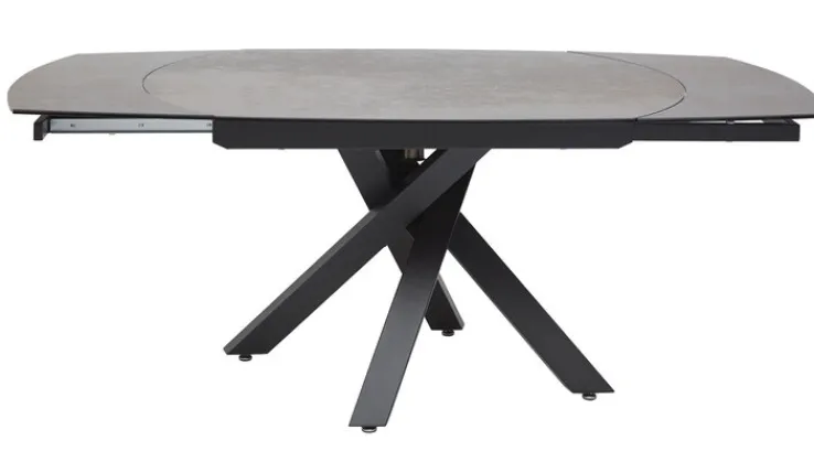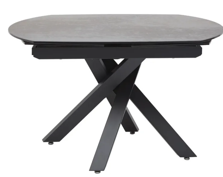 Die Tischplatte ist aus einer rostbraunen Keramik gefertigt und macht diesen Tisch zu einem hochwertigen und stilvollen Möbelstück für das Esszimmer oder die Küche. Das schwarze Gestell aus Stahl mit überkreuzten Tischbeinen sorgt für einen stabilen Stand und verleiht dem Esstisch ein modernes Erscheinungsbild. Mit seiner ovalen Form ist der PURO Esstisch MEMPHIS eine willkommene Abwechslung zu einem runden oder rechteckigen Tisch. Bei Bedarf kann die Tischplatte einfach und schnell verlängert werden.