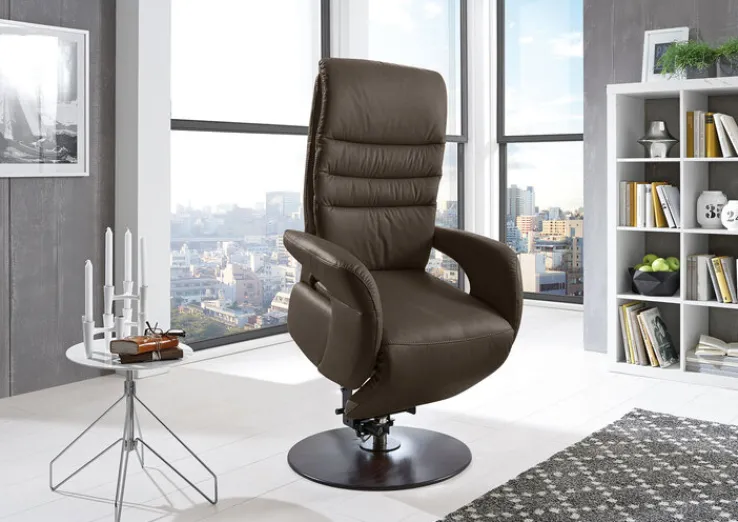 Der PURO Fernsehsessel CERGY S1-V1 überzeugt mit einem Lederbezug im Farbton Mocca und fügt sich nahtlos in nahezu jedes zu Hause ein. Durch die verstellbare Sitz- und Rückenfläche mit 2 Motoren ist das Ausruhen und Relaxen ein wahres Vergnügen. Mit dem echt bezogenen Rücken ist der elegante Fernsehsessel mit integrierter Aufstehhilfe auch in der Raummitte platzierbar.
