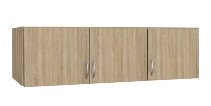 Wer den Platz auf dem 3-türigen Kleiderschrank C.A.P.A von QUARTIER optimal ausnutzen möchte, kann dies mit dem Aufsatzschrank tun. Hinter den drei Drehtüren befinden sich große Fächer. Hier kann unsichtbar verstaut werden, was weniger oft benötigt wird. Der Korpus und die Fronten bestehen aus einer Holznachbildung. Das Sonoma Eiche Holzdekor verleiht dem Schrankaufsatz Charme. Die formschönen Griffe sind passend dazu ausgewählt.