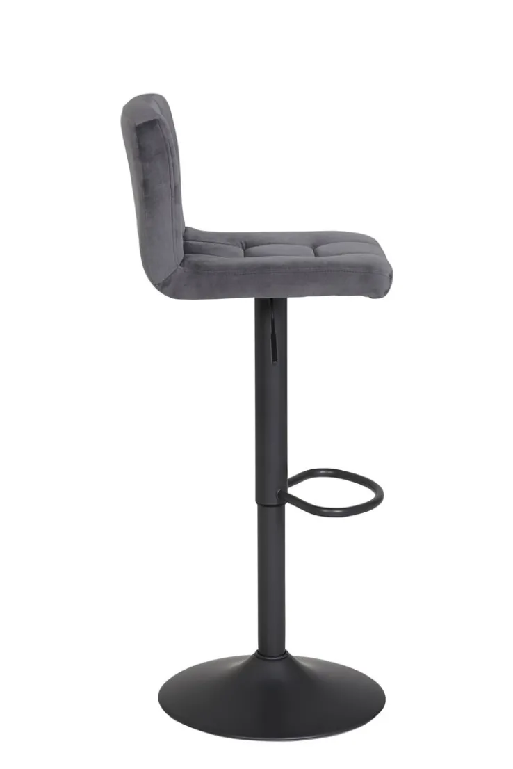 Der schwarze Barstuhl AMANDA S ist ein Möbelstück für Innenräume. Deshalb eignet er sich als Sitzmöbel für Barbereiche, Wohnzimmer oder Küchen. Sein Gestell wurde aus silbernem Metall angefertigt. Die Sitzfläche ist aus Samt (synthetische Faser). Die Höhe des Barstuhls kann von 85 cm bis 107 cm verstellt werden. Beim Einrichten des Raumes lassen sich die Stühle mit anderen Modellen aus der gleichen Serie kombinieren.