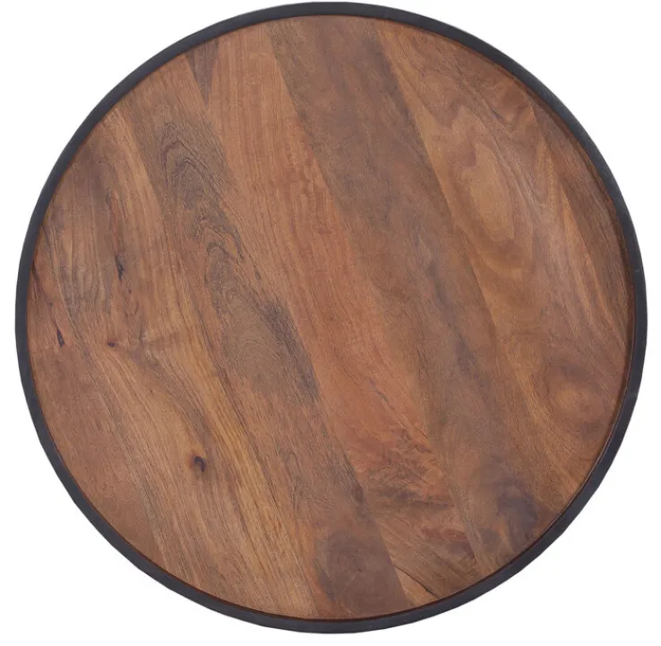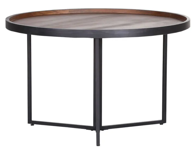 Mit einem Durchmesser von 80 cm bietet der aus Metall und edlem Mangoholz gefertigte QUARTIER Beistelltisch RORY viel Platz für Zeitschriften, Getränke und Snacks.