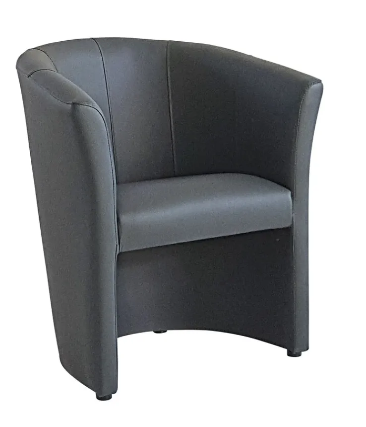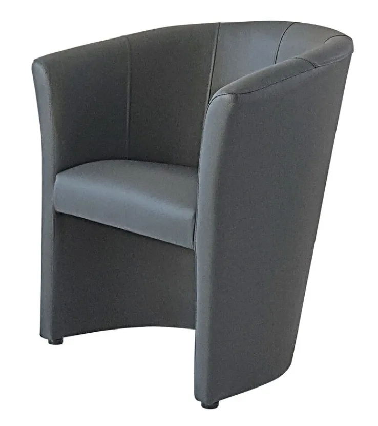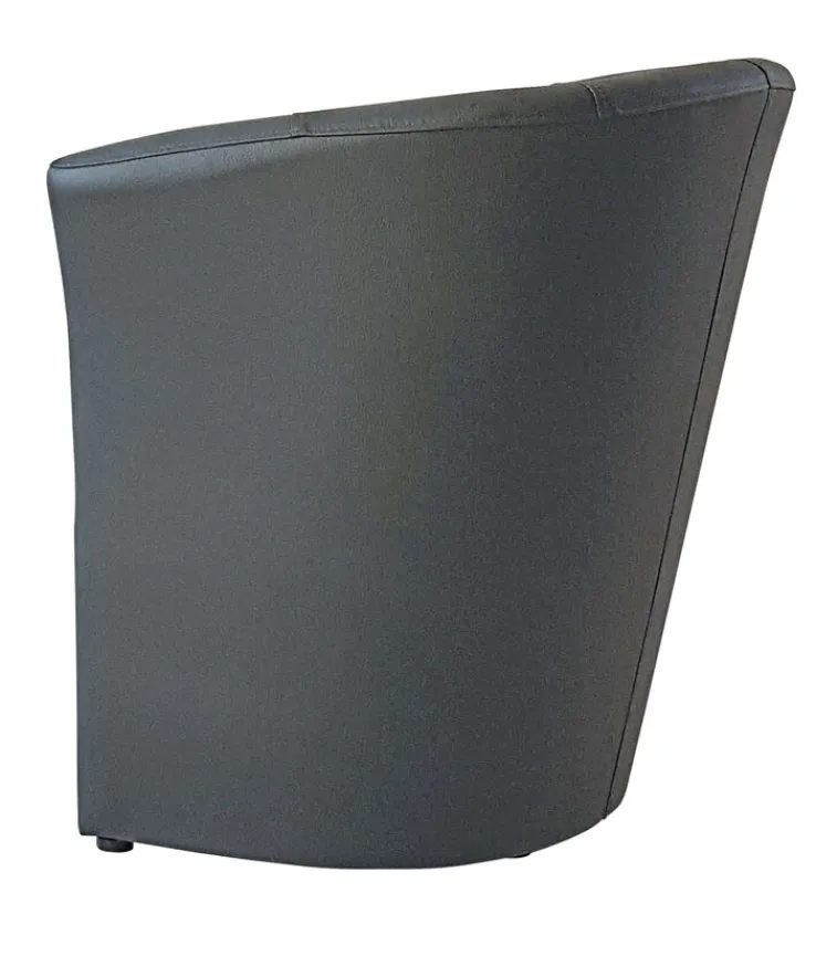 Dieser Cocktailsessel BLAINE zeigt graues Kunstleder. Die Sitzhöhe des Möbels beträgt 45 cm. Seine Breite liegt bei 67 cm, die Höhe beträgt 76 cm und die Tiefe 59 cm.