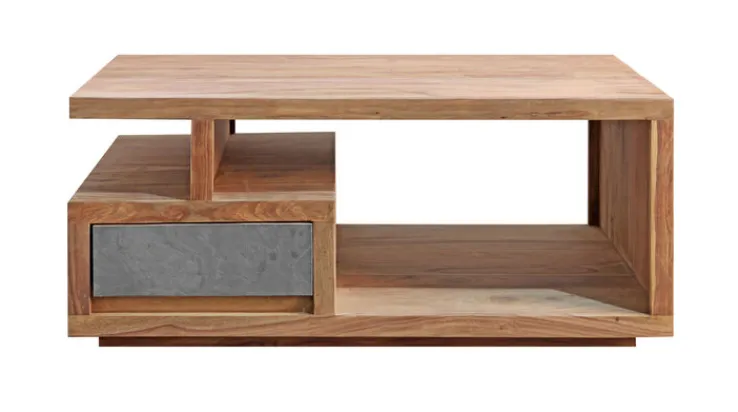 In den beiden Schubladen können Sie Ihre Kopfhörer, Fernbedienungen oder private Unterlagen aufbewahren. Auf der unteren Ablage haben Sie Ihre Fernsehzeitung oder Zeitschriften stets griffbereit. Die silberfarbenen Griffflächen der integrierten Schubladen setzen einen reizvollen Kontrast zu den individuellen Maserungen des hellbraunen Sheeshamholzes. Das tragfähige Edelholz verleiht dem Couchtisch PRETORIA eine natürliche und behagliche Ausstrahlung. Der Tisch harmoniert perfekt mit weiteren Möbeln der PRETORIA Serie. Er passt aber auch zu anderen hellen Möbeln in zeitgemäßem Design.