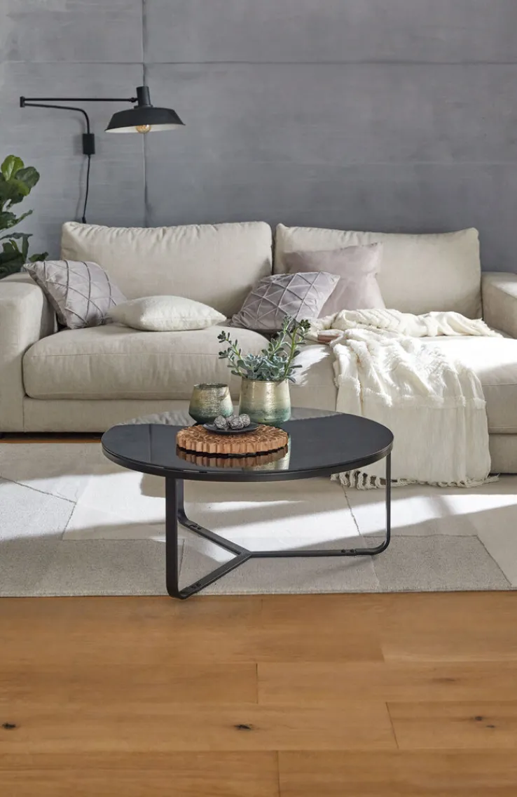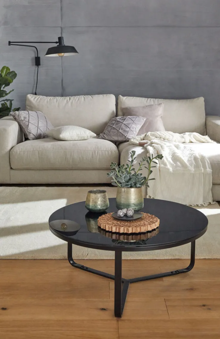 Dieser Couchtisch aus der Serie NEW YORK präsentiert sich mit einer runden Tischplatte aus schwarzem Sicherheitsglas und einem schlichten, modernen Gestell. Der Durchmesser beträgt 80 cm, die Höhe liegt bei 35,5 cm. Die glatte Glasoberfläche sorgt für einen klaren, zeitgemäßen Eindruck und ist pflegeleicht. Das minimalistische Gestell unterstreicht den modernen Stil und bietet Stabilität im Wohnbereich. Der Tisch eignet sich aufgrund seiner Form und Dimensionen besonders für das Wohnzimmer. Die Kombination aus schwarzem Glas und Metallgestell fügt sich harmonisch in verschiedene Einrichtungsstile ein.