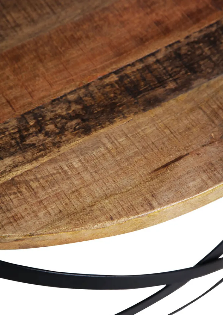 Was den Couchtisch auszeichnet, ist seine sehenswerte Kombination aus Holz und Metall. Bei der 25 mm starken Tischplatte handelt es sich um massives Mangoholz, das mit seiner naturbelassenen Maserung punktet. Dazu bildet das schwarz lackierte Metallgestell mit seinem geschwungenen Design einen gelungenen Kontrast. Besonders in modernen Einrichtungen kann der Tisch für Abwechslung sorgen. Von seiner natürlichen Optik profitieren die unterschiedlichsten Räume, vor allem solche, in denen es sonst eher farblos zugeht.