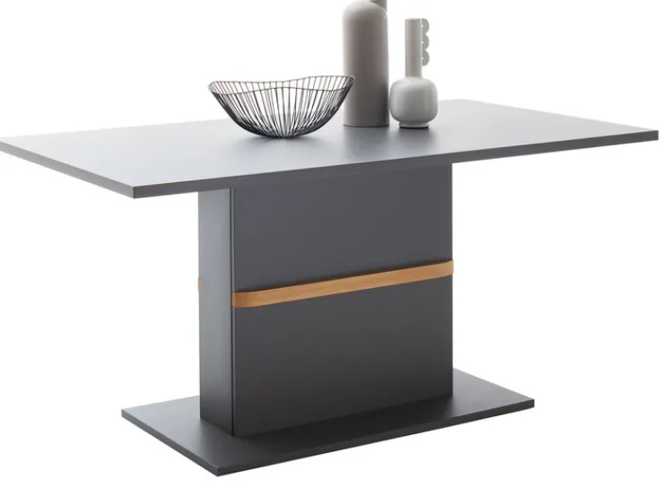 Der Esstisch CHARLOTTE hat eine Größe von 90 x 77 x 160 cm. Er kombiniert ein solides, graues Säulengestell mit einer Absetzung in Balkeneiche mit einer geräumigen Tischplatte in Grau. Durch den holzfarbigen Akzent strahlt der Tisch eine gewisse Natürlichkeit aus. Neben der angesagten Optik überzeugt der Esstisch mit einer großzügigen Tischplatte für bis zu 6 Personen. Darüber hinaus bietet der Esstisch ausreichend Platz für Karten- und Gesellschaftsspiele.