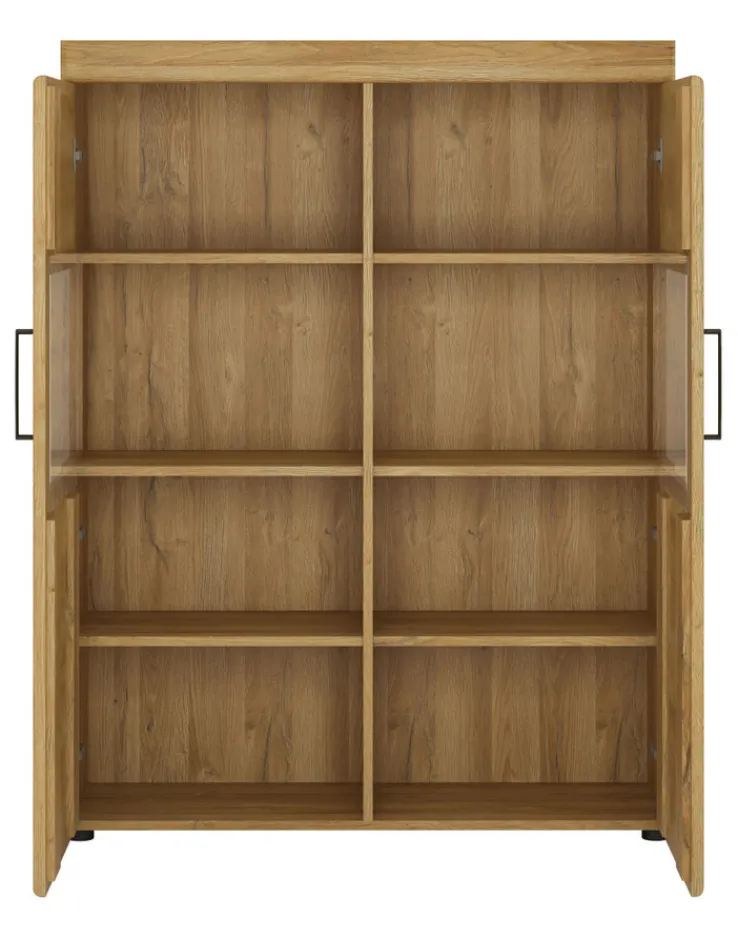 Die Holzoptik in der Farbe alter Eichen verleiht dem Highboard CORTINA eine schöne, warme Optik. Die porta Linie Quartier steht für schlichte und doch elegante, funktionale Möbel. Dieser Anspruch spiegelt sich in dem Highboard auch durch die optimale Ausnutzung der Stellfläche wider. Hinter den beiden Türen befinden sich acht Fächer, die auf der Höhe der Glaselemente besonders groß sind. Für noch mehr Licht und Leichtigkeit in dem Highboard CORTINA von Quartier sind auch in den Seiten gläserne Bereiche, die zur Schau gestellte Schätze ins rechte Licht rücken.