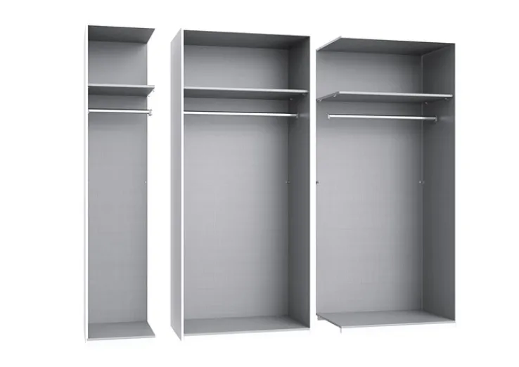 Der Kleiderschrank Korpus KIRA ist aus solider Holznachbildung gefertigt und besitzt eine gute Stabilität. Der Korpusschrank ist mit einem Einlegeboden und einer Kleiderstange ausgestattet, die ausreichend Platz für Jacken, Kleider und vieles mehr bieten. Neben dem Stauraum bietet der Kleiderschrank Korpus ein ansprechendes, modernes Design. Der Kleiderschrank Korpus ist für kleine Schlafzimmer ebenso geeignet, wie für Kinder- und Jugendzimmer. Für ein harmonisches Ambiente sollte der Schrank mit weiteren Möbeln der KIRA Serie kombiniert werden.