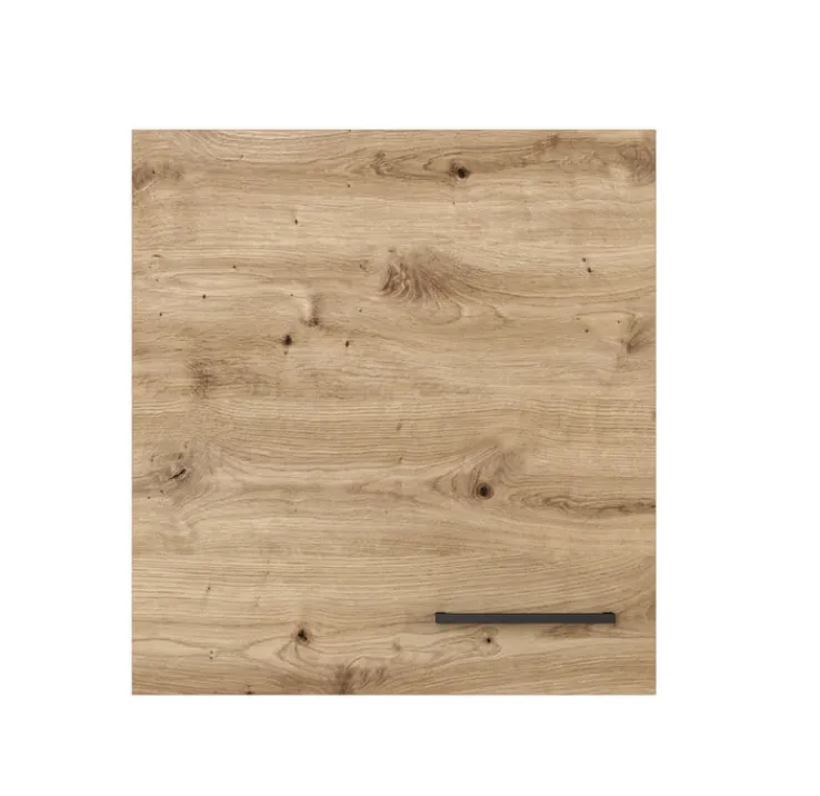 Der Hängeschrank für die Küche präsentiert sich in einem ansprechenden Design aus Artisan Eiche Nachbildung. Mit einer Breite von 50 cm, einer Höhe von 54,8 cm und einer Tiefe von 32 cm bietet er ausreichend Stauraum für Ihre Küchenutensilien. Die warme braune Farbe und die natürliche Holzmaserung verleihen dem Schrank eine zeitlose Eleganz, die sich harmonisch in verschiedene Kücheneinrichtungen einfügt. Ausgestattet mit einer Drehtür und einem Einlegeboden, ermöglicht der Schrank eine flexible Nutzung des Innenraums. Das Material besteht aus einer robusten Holznachbildung, genauer gesagt Spanplatte, die Langlebigkeit und Stabilität gewährleistet. Der schwarze Griff an der Tür setzt einen modernen Akzent und rundet das Gesamtbild stilvoll ab. Dieser Hängeschrank ist eine praktische und ästhetische Ergänzung für jede Küche.