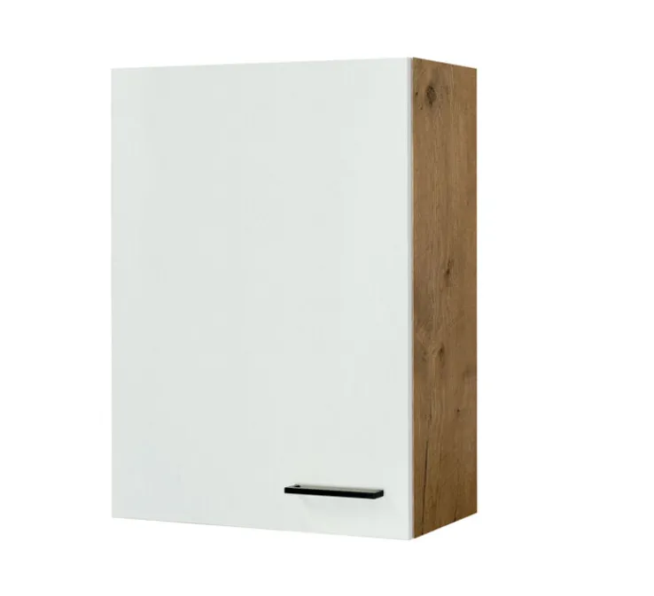 Der 1-türige Küchen Hängeschrank AVILA hat eine Breite von 60 cm und ist die perfekte Ergänzung für eine modern gestaltete Küchenzeile. Durch die schönen Oberflächen in den Dekoren Eiche und weiß-matt fällt der Schrank sofort ins Auge und ist vielseitig mit verschiedenen Küchenmöbeln kombinierbar. Der geräumige Innenraum des Hängeschranks ist mit drei Einlegeböden unterteilt und bietet Platz für Teller, Tassen oder Schüsseln.