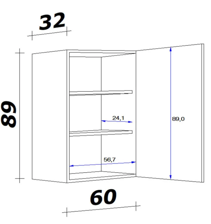 Breite: 60 cmHöhe: 89 cmTiefe/Ausladung: 32 cmGewicht: 20,5 kg