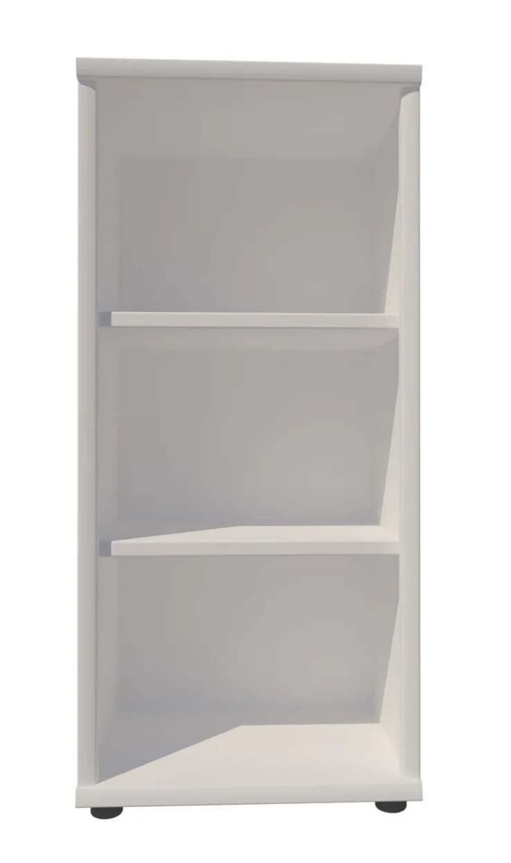 Das Regal verfügt über drei offene Fächer und zwei Einlegeböden, wodurch eine flexible Nutzung zur Ablage und als Stauraum möglich ist. Die Regalböden sind gleichmäßig angeordnet und bieten ausreichend Platz für Akten, Bücher oder Dekorationsgegenstände. Das Möbelstück ist für den Innenbereich konzipiert und eignet sich besonders für den Einsatz im Büro oder Arbeitszimmer. Die Schlichtheit des Designs und die Funktionalität stehen im Vordergrund.