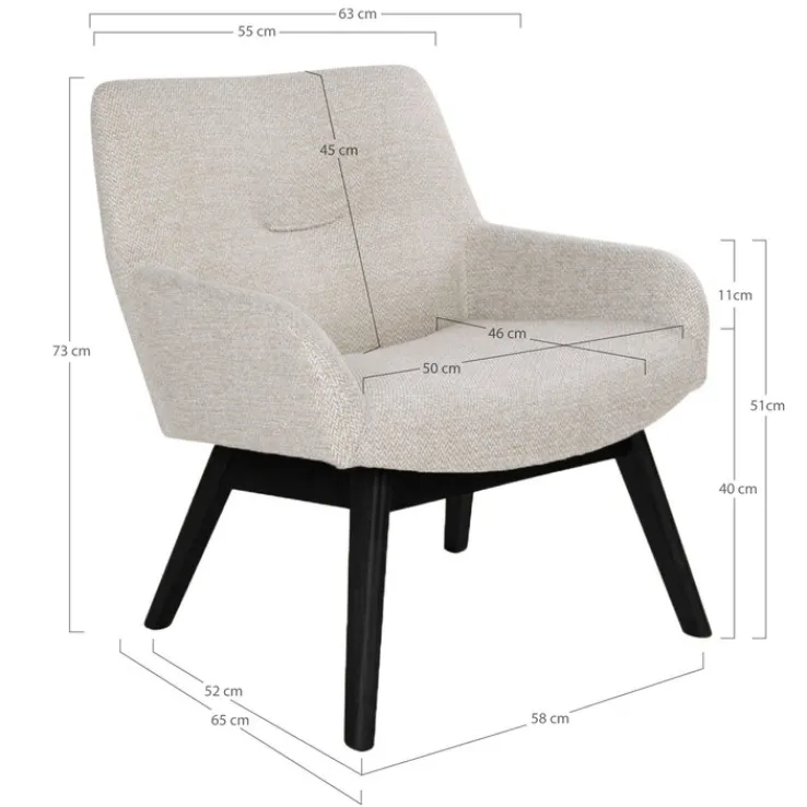 Breite: 63 cmHöhe: 73 cmTiefe/Ausladung: 65 cmSitztiefe: 46 cmSitzhöhe: 40 cm