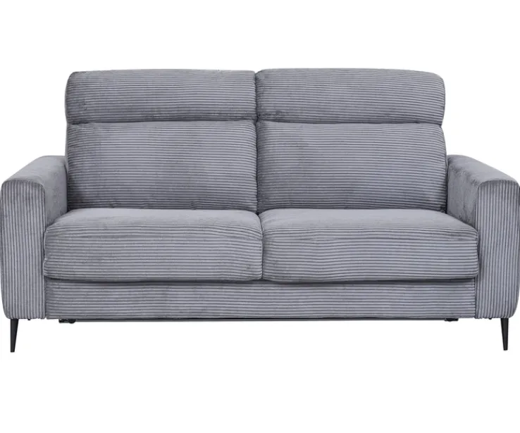 Das Sofa ist in einem eleganten Grauton gehalten, der sich harmonisch in verschiedene Einrichtungsstile einfügt. Der Bezug aus Textil verleiht dem Sofa eine angenehme Haptik und sorgt für hohen Sitzkomfort. Die Polsterung aus Schaumstoff bietet eine bequeme Sitz- und Liegefläche, während die schwarzen Metallfüße in matter Optik dem Sofa einen modernen Touch verleihen. Die klaren Linien und das dezente Streifenmuster des Stoffes unterstreichen das zeitlose Design.