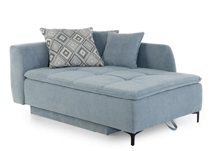 Das Schlafsofa MILA in frischem Aquablau mit eleganten schwarzen Metallfüßen ist Couch und Bett in einem. Durch das moderne Design und die hochwertigen Komfortmerkmale wertet es das Wohn- oder Gästezimmer sowohl optisch als auch funktional auf.