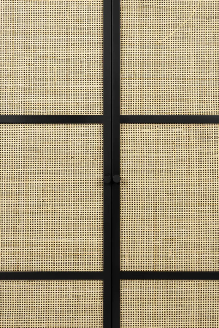 Jede Menge Stauraum bietet der 70 x 145 cm große Schrank JOANNA in Rattangeflecht/ Schwarz. Es besticht zudem auf den ersten Blick mit einem seinem modernen Skandi-Look, der Eleganz und Natürlichkeit ausstrahlt.