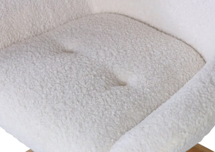 Der Sessel SMOOTY misst 75 x 95 x 85 cm und vereint das extravagante Spinngestell aus lackiertem Eiche Massivholz mit einem komfortablen Sitz. Bezogen mit einem kuschelweichen Plüschbezug aus Synthetikfaser ist der Sessel der perfekte Platz zum längeren Verweilen beim Entspannen, Lesen oder Tee trinken. Der Sessel ist zudem bis zu 360° drehbar, wodurch sich das Aufstehen besonders komfortabel gestaltet. Mit seinem angesagten Design im Skandi Look harmoniert der Sessel hervorragend mit hellen Holzmöbeln, egal ob im klassischen oder modernen Stil.