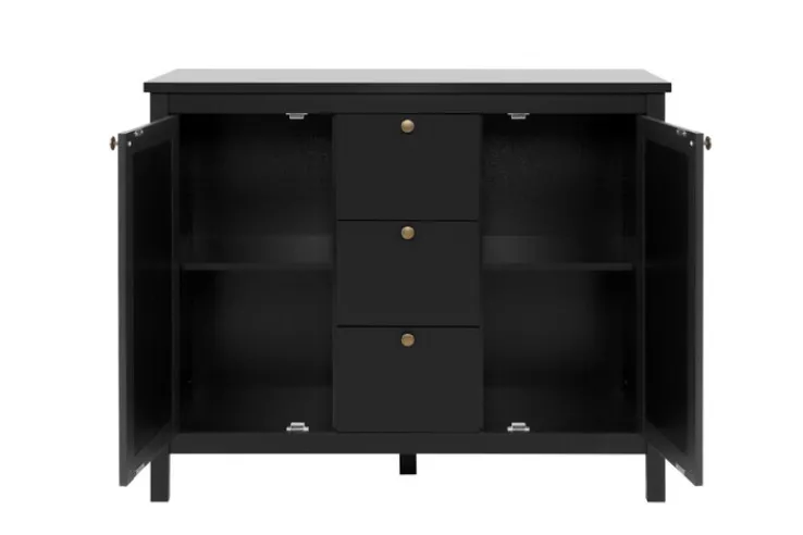 Sideboard CORDOBA kann dank seines vielseitigen Looks in jedem Raum zum Einsatz kommen. Seine schwarze Holzoptik passt in Wohn- oder Esszimmer ebenso wie in Büro, Jugend- oder Gästezimmer. Auch als praktisches Unterbringungsmöbel in Flur und Diele kann das 110 cm breite und 90 cm hohe Schränkchen gute Dienste leisten.