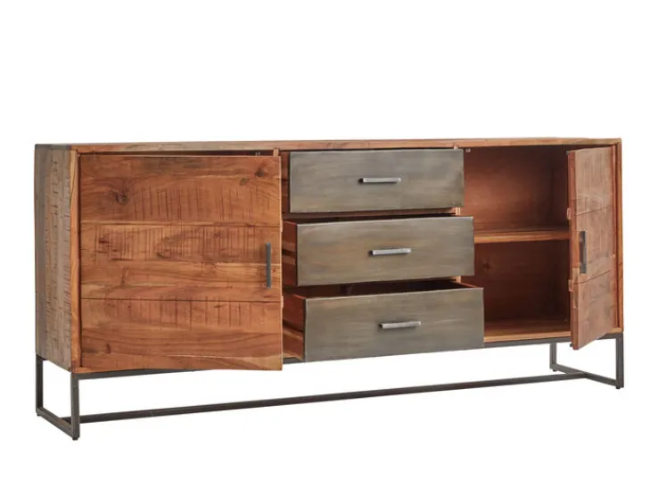Das Sideboard JOHNSON verbindet eine funktionale Stauraumnutzung mit einem ästhetischen Design, das sich vielfältig in unterschiedliche Einrichtungsstile integrieren lässt. Die Herstellung aus massivem Akazienholz in Verbindung mit einer aufwändigen Gestaltung verleiht diesem Möbelstück eine besonders charakteristische Ausstrahlung.