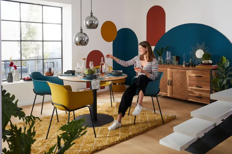 Für Korpus, die 3 Schubladen und die 2 Schranktüren des Sideboards TOM kommt massives Akazienholz zum Einsatz. Der natürliche Charakter des Holzes bleibt durch die farblos lackierte Oberfläche erhalten. Die Drehtüren sind mit einem Einsatz aus Rattan ausgestattet, dessen Struktur perfekt mit dem Akazienholz harmoniert. Ein robuster Rahmen aus Metall und Griffe im gleichen Farbton komplettieren das Design. #meinporta #portamöbel #herbstfarben