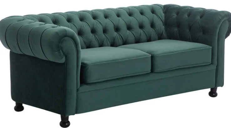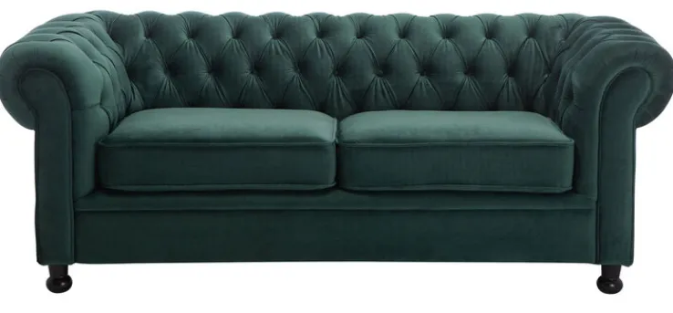 Das 192 cm breite Sofa LONDON bringt britisches Lounge-Flair ins Wohnzimmer. Sein dunkelgrüner Samtbezug verleiht dem 3-Sitzer eine edle, wohnliche Ausstrahlung und sorgt für ein angenehm weiches Sitzgefühl.