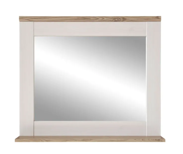 Der Spiegel hat eine rechteckige Form und besitzt einen breiten Rand aus einer hochwertigen Holznachbildung. Die Oberfläche begeistert mit dem Farbton Sibiu Lärche und einer Absetzung im San Remo hell Dekor. Die Spiegelfläche wurde natürlich aus hochwertigem Spiegelglas gefertigt und hat die optimale Größe zum Zähneputzen, Schminken oder Rasieren. Somit eignet sich der Spiegel ganz hervorragend für das Badezimmer. Außerdem ist er mit einer praktischen Ablage ausgestattet, auf der Sie beispielsweise Ihren Zahnputzbecher oder Ihre Haarbürste platzieren können.