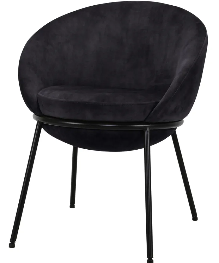 Basierend auf einem schwarz pulverbeschichtetem Vierfußgestell aus Metall hat der Stuhl ROUND eine hohe Stabilität. Sein runder, angenehm gepolsterter Sitz besticht durch eine abgerundete Rückenlehne, die nahtlos in Armlehnen übergeht. Der anthrazitfarbene Textilbezug fühlt sich wunderbar weich an und sorgt gemeinsam mit der Polsterung für einen hohen Sitzkomfort. Durch die integrierten Armlehnen wird hingegen das Aufstehen erleichtert. Der moderne Stuhl verleiht dem Wohnraum mit seinem stilvollen Design ohne großen Aufwand einen Hauch von Eleganz.
