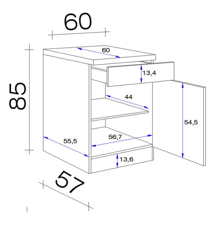Sockelblende inklusive: jaGriffe inklusive: jaAnzahl Drehtüren inklusive: 1Anzahl Falttüren inklusive: keineAnzahl Schubkästen inklusive: 1Anzahl Einlegeböden inklusive: 1