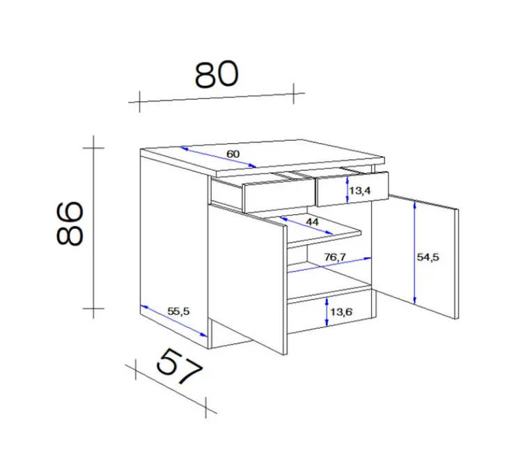 Griffe inklusive: jaAnzahl Drehtüren inklusive: 2Anzahl Schubkästen inklusive: 2Anzahl Einlegeböden inklusive: 1