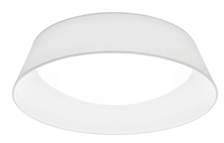 Die RL LED Deckenlampe X-PONTS ist aus weißem Kunststoff gefertigt und hat einen Durchmesser von 45 cm. Sie reicht zudem 12 cm von der Decke und erzielt mit dem überstehenden Lampenschirm einen spannenden Look. Die fest eingebaute LED erzielt eine Helligkeit von 1700 Lumen und sorgt mit warmen 3000 Kelvin für ein angenehmes Ambiente im Wohnraum. Punkten kann die LED-Leuchte außerdem mit einer langen Haltbarkeit von bis zu 30.000 Stunden. Dank der minimalistischen Optik ist die Deckenlampe vielseitig kombinierbar.