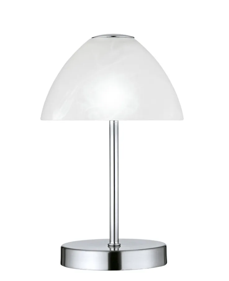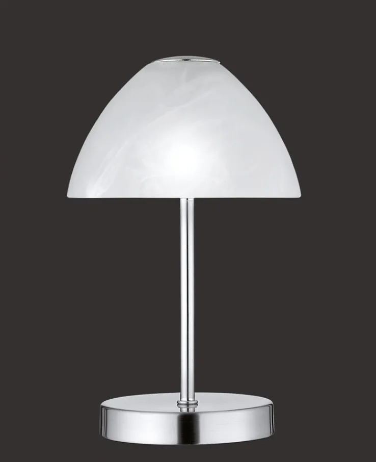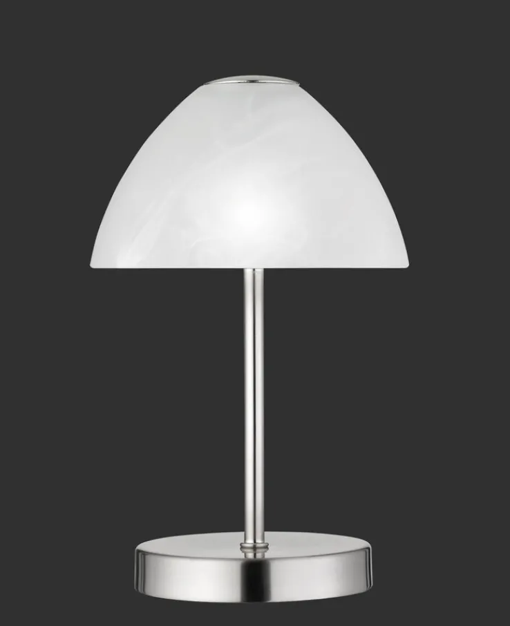 Die dezente LED-Tischleuchte von Reality setzt effektvoll jeden Wohnbereich ins rechte Licht. Schenken Sie Ihrem Zuhause wohnliche Atmosphäre mit zurückhaltender Eleganz. Die klaren Linien, der silbernes Metallfuß und der schön geformte weiße Glasschirm dieser zeitlosen Tischlampe passen perfekt zu vielen klassisch-modernen Einrichtungsstilen.