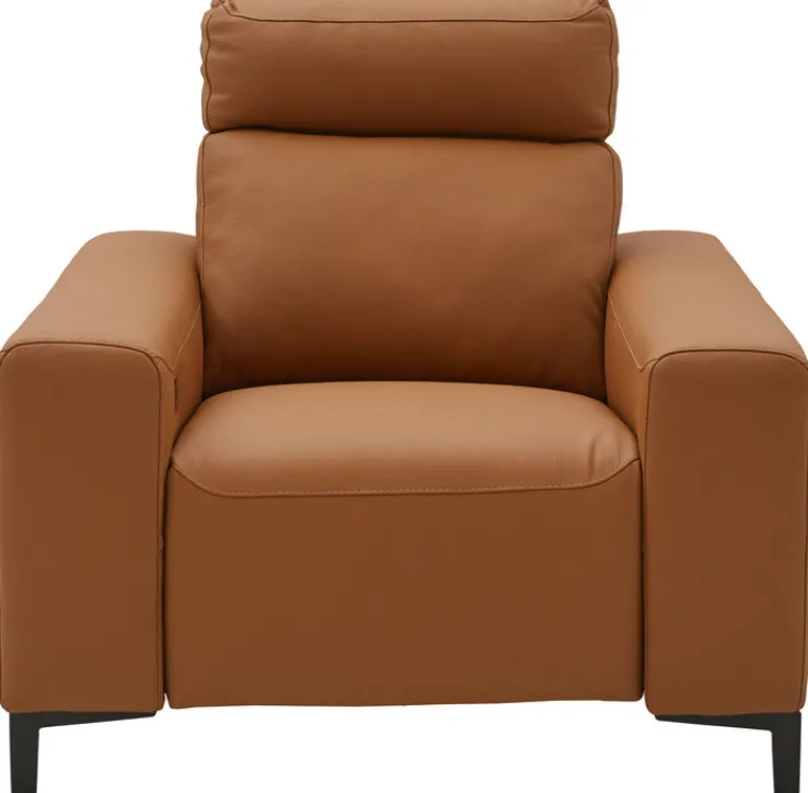 Mit seiner mondänen Konzeption und der ausdrucksstarken Farbe Cognac qualifiziert sich der moderne Relaxsessel SARANDA zum zentralen Mittelpunkt des Wohnzimmers. Losgelöst von einer Couchlandschaft bietet er einer einzelnen Person die Möglichkeit, es sich beispielsweise vor dem Fernseher bequem zu machen und richtig gemütlich zu lümmeln. Der Relaxsessel begeistert außerdem mit seinem eleganten Lederbezug, der auch den Rücken eines freistehenden Sessels vollständig verkleidet.