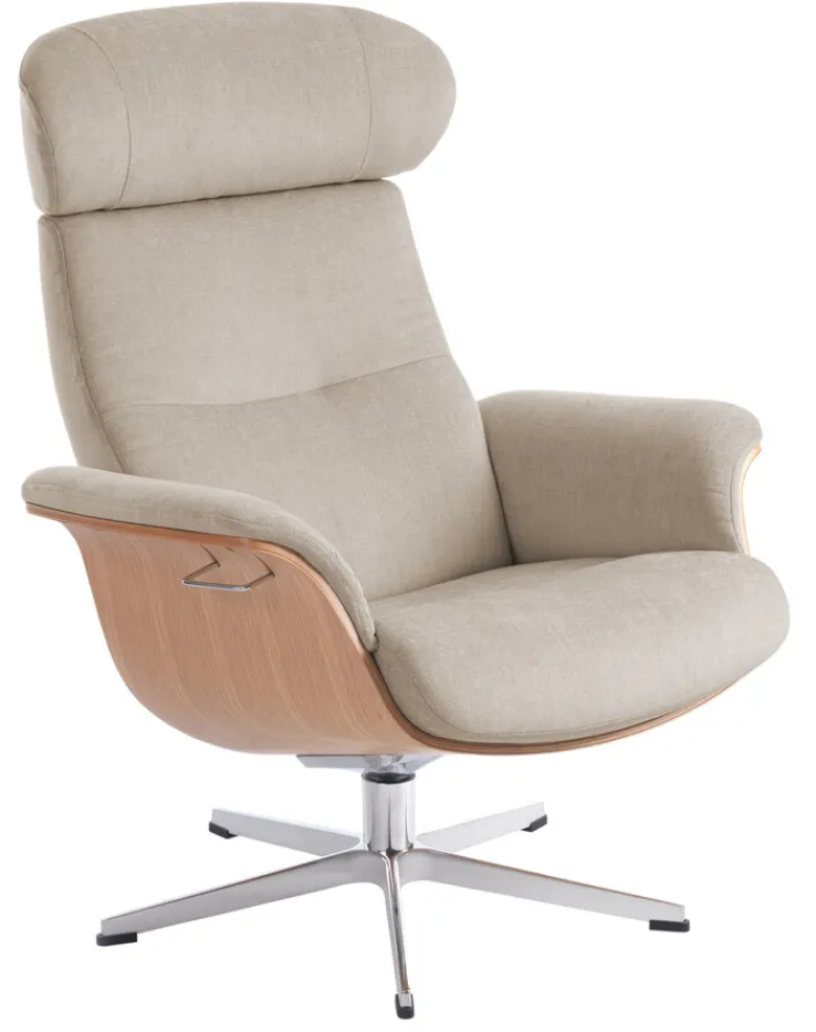 Der Sessel ist mit einem hochwertigen Stoffbezug in Sandbeige und einer Sitzschale aus Holz in Eiche natur ausgestattet. In einem modernen Wohnambiente ist er ein ebenso stilvolles wie praktisches Sitzmöbel. Für einen optimalen Komfort sorgen nicht nur die verstellbare Kopflehne und die Rückenlehne, sondern auch ein drehbarer X-Fuß mit Memoryfunktion. Beim Aufstehen schwingt der Sessel TIMEOUT 2C immer wieder in seine Ausgangsposition zurück. Im porta! Online Shop ist optional ein farblich passender Hocker zum Füße hochlegen erhältlich.