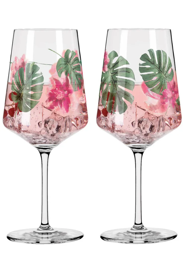 Das RITZENHOFF Aperitifglas SOMMERSONETT SPRIZZ I im attraktiven 2er Set überzeugt mit einem trendigen Blätter- und Blüten-Motiv. Die schönen Gläser eignen sich für frische und fruchtige feine Sprizz-Cocktails an einem lauen Sommerabend. Durch den schlanken Stiel liegen die Gläser optimal in der Hand. Die Gläser im sommerlichen Design sind für nahezu jeden Anlass gut geeignet und haben eine Füllmenge von jeweils 544 ml.