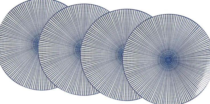 Mit diesen flachen Tellern aus hochwertigem Porzellan wird ein traditionelles japanisches Dekor für trendbewusste Kosmopoliten wiederbelebt. Die Dessins wurden damals auf den Reisschalen nur von Hand gemalt und konnten daher nicht auf jedem Dessertteller perfekt kopiert werden, sodass sie jeweils unterschiedlich gestaltet sind. Durch einen royalblauen Farbton sind die Teller ein strahlender Blickfang auf jedem Esstisch. Sie eignen sich perfekt zum stilvollen Servieren von Beilagen aller Art oder von Desserts.