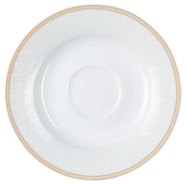 Die Ritzenhoff & Breker Espresso-Untertasse GEO aus beigem Porzellan ist die perfekte Ergänzung zur Espresso-Tasse der Serie. Sie besticht auf den ersten Blick mit einem zierlichen geometrischen Design und strahlt Eleganz aus.