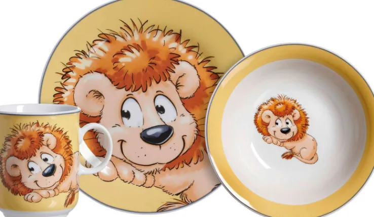 Das Ritzenhoff & Breker Kindergeschirr-Set HAPPY ZOO LEO ist 3-teilig. Das Porzellan zeigt das Motiv „Leo Löwe“. Das Set beinhaltet 1 Teller, 1 Schale und 1 Becher. Alle Teile werden nach Gebrauch in die Spülmaschine gegeben.